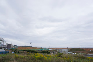 今日の地福寺の周辺は雨/くもり。重い灰色の雲がのしかかっており、太平洋の水平線との境界線はいつもよりもぼんやりとしています。